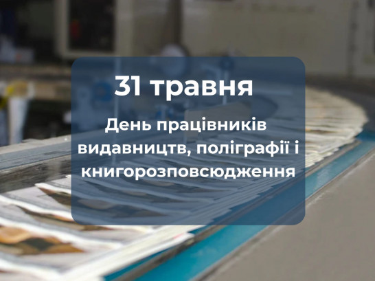 31.05.2025Шановні працівники видавництв, поліграфії і книгорозповсюдження! Щиро вітаємо вас із професійним святом!