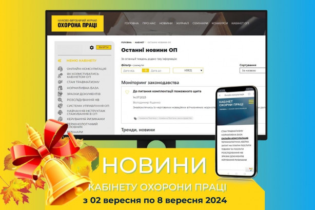 Редакція журналу «Охорона праці» Новини КАБІНЕТУ ОХОРОНИ ПРАЦІ з 2 по 8 вересня 2024 року