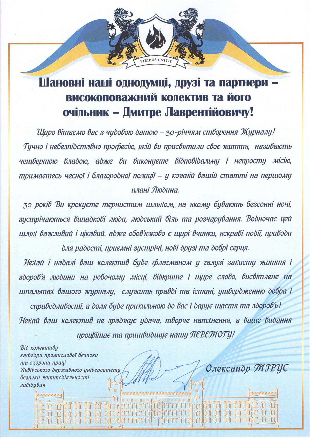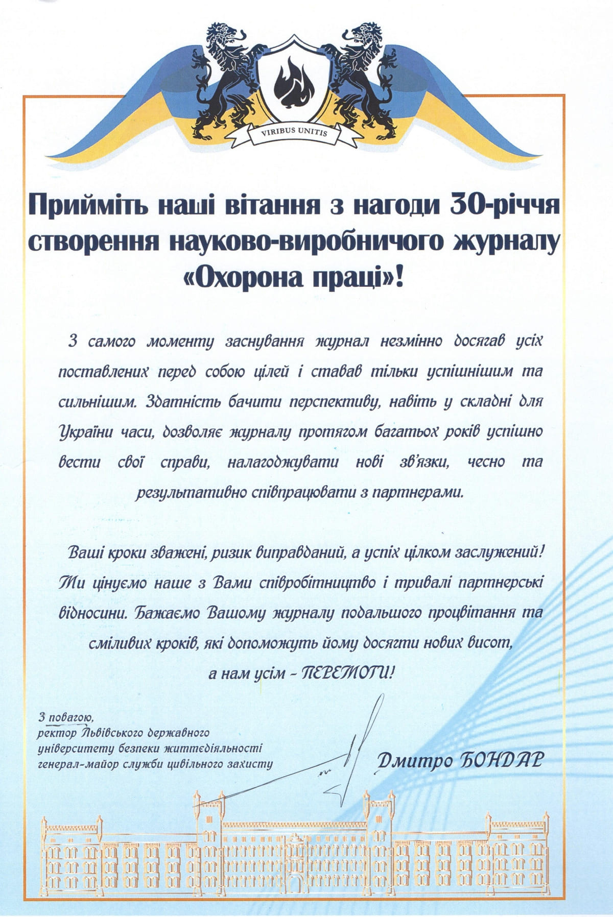 Дякуємо за високу оцінку діяльності колективу журналу, за привітання і побажання! За величезний кредит довіри, яку ми й надалі виправдовуватимемо. Разом – ми сила!