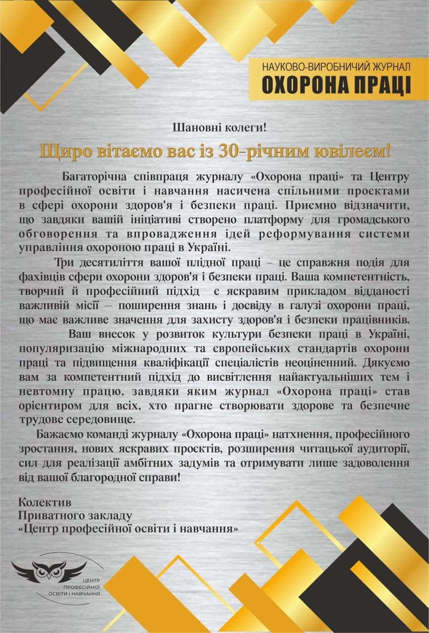 З нагоди свого ювілею журнал «Охорона праці» вручив відзнаки і привітав людей, без яких немислиме його існування: наших талановитих авторів, партнерів, читачів, просто друзів, усіх, хто не байдужий до своєї справи і прагне ділитись професійним досвідом та знаннями. Ми завжди раді надати таку можливість на сторінках журналу, на наших конференціях, вебінарах, тренінгах та працювати разом задля безпеки праці в Україні.