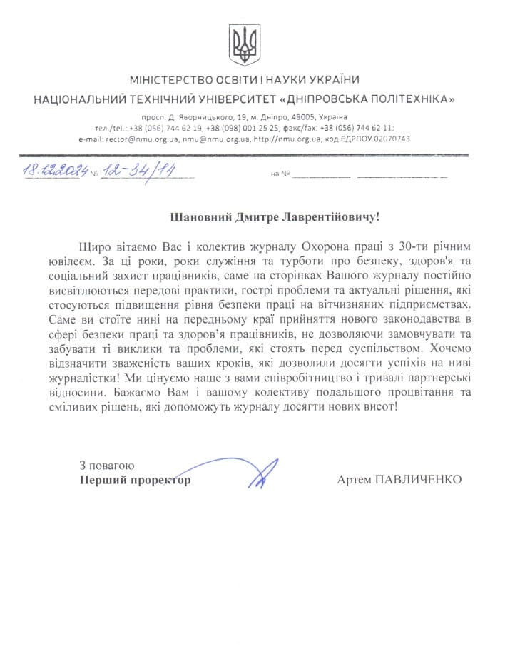 31.01.2025Традиційно під завісу року, що минає, ми підсумовуємо, що із запланованого вдалося виконати, а що ні, намагаємось зазирнути в майбутнє, зрозуміти, на чому слід зосередитись, до яких нових викликів та випробовувань готуватися. Чи не найкращий спосіб з’ясувати ці непрості питання – зустрітися у широкому колі фахвців (партнери журналу, друзі, спеціалісти з ОП, представники сторін соціального діалогу, навчальних та наукових закладів) та обміркувати актуальні питання разом. Ще одна вагома нагода для такої зустрічі – 30-річчя журналу «Охорона праці». Єдиного вітчизняного видання з восьми, що ще недавно були на ринку, якому вдалося вистояти в часи нескінченних реформ, економічних штормів та інших випробувань.