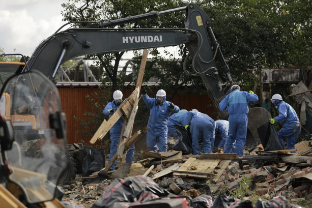 На фото: Роботи ПРООН з розчищення завалів на одному з об'єктів у Сукачах, Київська обл., 2023 р.