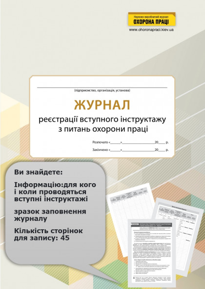 Журнал реєстрації вступного інструктажу з питань охорони праці.
