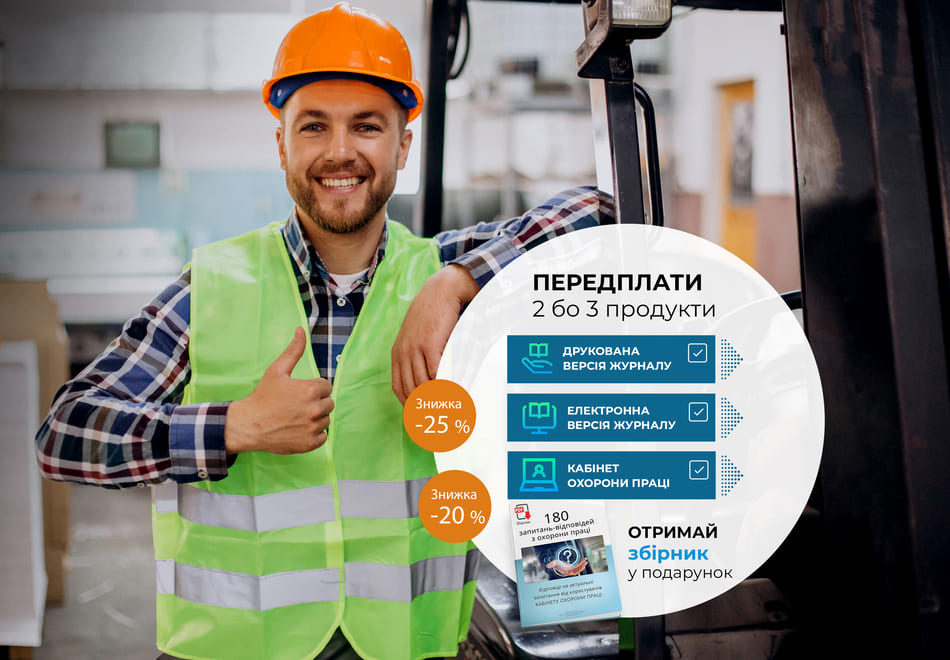 - Журнал «Охорона праці» друкована версія + Журнал «Охорона праці» електронна версія + КАБІНЕТ ОХОРОНИ ПРАЦІ (-25%) + ПОДАРУНОК PDF збірник "180 запитань-відповідей"