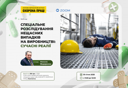 Вебінар на тему: «Спеціальне розслідування нещасних випадків на виробництві: сучасні реалії» Дата: 30.01.2026, 11:00–12:00 Спікер: Микола Федоренко Вартість: 510 грн з ПДВ Для передплатників КАБІНЕТУ ОХОРОНИ ПРАЦІ або журналу «Охорона праці» участь безплатна Зареєструватись   Жоден роботодавець не може гарантувати відсутність нещасних випадків (НВ) на виробництві. До журналу постійно надходять звернення...
