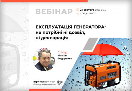 Вебінар «Експлуатація генератора: не потрібні ні дозвіл, ні декларація»