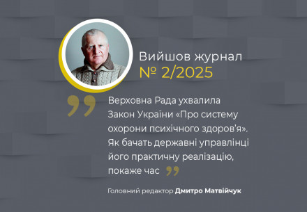 На момент здачі в друк другого номера журналу Україна має ухвалений Верховною Радою, але ще не підписаний Президентом Закон України «Про систему охорони психічного здоров’я». Закон, який покликаний створити в державі умови, коли про психічне благополуччя українців зобов’язані дбати всі без винятку державні, приватні та суспільні інституції. А безпосередньо надавати...