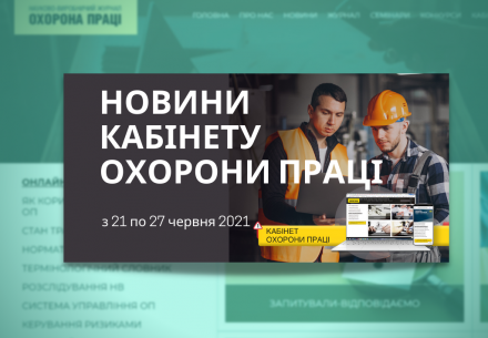 Новини КАБІНЕТУ ОХОРОНИ ПРАЦІ: з 21 по 27 червня 2021 року