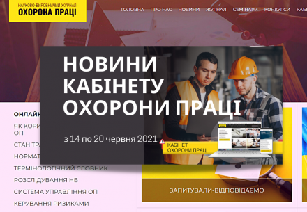 Новини КАБІНЕТУ ОХОРОНИ ПРАЦІ: з 14 по 20 червня 2021 року