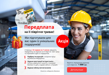 Передплати журнал "Охорона праці" на II півріччя та отримай подарунок! Науково-виробничий журнал «ОХОРОНА ПРАЦІ»  Передплатні індекси журналу: «Охорона праці» - 74377 «Охрана труда»  - 74378 Журнал "Охорона праці"- 60 сторінок Додаток "На допомогу спеціалісту з охорони праці" - 64 сторінки УВАГА! АКЦІЯ У період з 14 червня  по 7 липня...