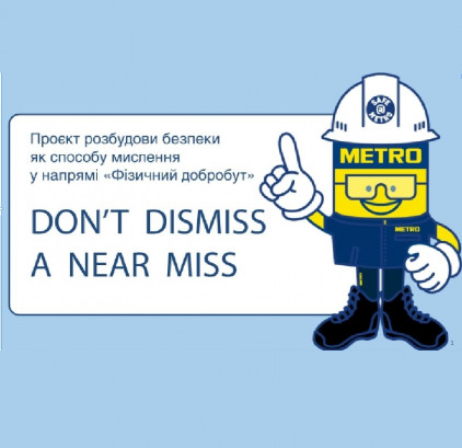 Отже, для побудови проактивного середовища в компанії та розбудови безпеки як способу мислення співробітників МЕТРО Україна 2022 року розпочала проєкт DON’T DISMISS A NEAR MISS (програму виявлення та повідомлення про Near Miss). Проєкт став ключовою ініціативою в напрямі «Фізичний добробут працівників» у межах реалізації стратегії з управління персоналом МЕТРО Україна. Увагу проєкту сфокусовано на таких напрямах: