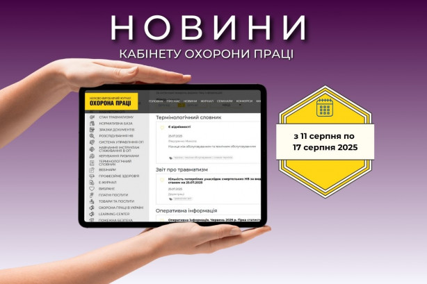 Редакція журналу «Охорона праці» Новини КАБІНЕТУ ОХОРОНИ ПРАЦІ з 11 по 17 серпня 2025 року