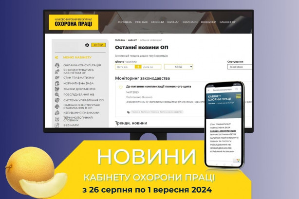 Редакція журналу «Охорона праці» Новини КАБІНЕТУ ОХОРОНИ ПРАЦІ з 26 серпня по 1 вересня 2024 року