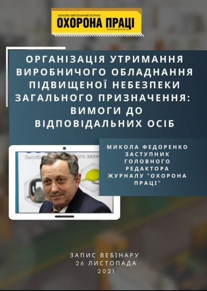 Організація утримання виробничого обладнання підвищеної небезпеки загального призначення: вимоги до відповідальних осіб. Запис вебінару