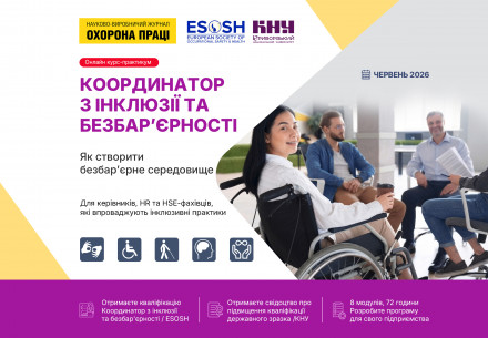 З 8 червня – практичний курс «Координатор з інклюзії та безбар’єрності»   Підготовка фахівця, що працює на перетині HSE, HR та управління процесами та середовищем   8 модулів, 72 години Дата: з 8 червня 2026 Тренери курсу Практикуючі експерти з інклюзії, безбар’єрності та охорони праці: Олена Пищикова, Наталія Кот, Анна Скотинянська, Валентина...