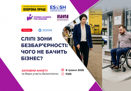 Вебінар: «Сліпі зони безбар’єрності: чого не бачить бізнес?»   Дата: 8 травня, 11:00 Для інженерів з ОП, HSE, ризик-менеджерів, HR, психологів, корпоративних тренерів, керівників компаній, архітекторів і проєктантів, фахівців з безпеки Детальніше про вебінар