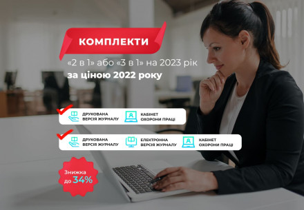 17 днів вже триває передплатна кампанія на 2023 рік від журналу "Охорона праці". Нагадуємо про АКЦІЇ СЕРПНЯ 2022 року Акція 1. Передплати КОМПЛЕКТ 2в1: КАБІНЕТ ОХОРОНИ ПРАЦІ + Журнал "Охорона праці"  або  Журнал "Охорона праці" друкований + електронний  на 6 чи 12 місяців 2023 року та отримай знижку 25% Акція...