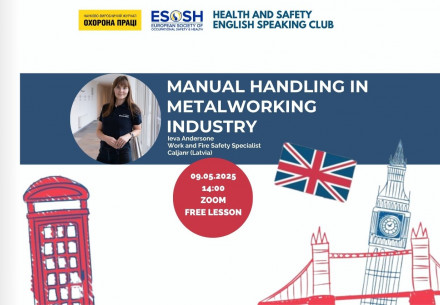 Лекція англійською мовою на тему «Ручна праця в металообробній промисловості»    Запрошуємо вас 9 травня о 13:00 на безоплатний урок, який проведе Ieva Andersone, Фахівець з охорони праці та пожежної безпеки компанії Caljan (Латвія)   Тема: «Ручна праця в металообробній промисловості» Мова лекції: англійська Участь безплатна ZOOM Детальніше про вебінар