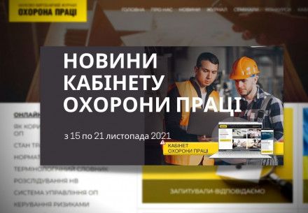 Новини КАБІНЕТУ ОХОРОНИ ПРАЦІ: з 15 по 21 листопада 2021 року