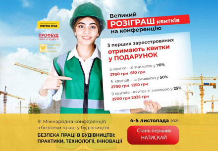Великий розіграш квитків на ІІІ Міжнародну будівельну конференцію «Безпека праці в будівництві: практики, технології, інновації», на якій виступатимуть з доповідями понад 20 вітчизняних та закордонних фахівців! Організатори: Журнал «Охорона праці», Профспілка працівників будівництва і промисловості будівельних матеріалів України, Будівельна Палата України Конференція проходитиме 4–5 листопада 2021 року з 10.00 до...