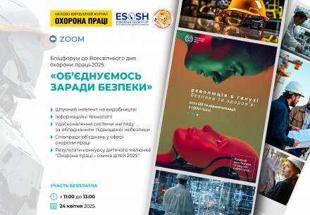 БЛІЦФОРУМ: ОБ’ЄДНУЄМОСЬ ЗАРАДИ БЕЗПЕКИ  24 квітня 2025 року З 11.00 до 13.10 Формат: ZOOM З нагоди Всесвітнього дня охорони праці запрошуємо взяти участь у динамічному та насиченому онлайн-заході, під час якого провідні експерти поділяться актуальними тенденціями у сфері безпеки праці.   У програмі: ESG та безпека: як екологія, соціальна відповідальність та...