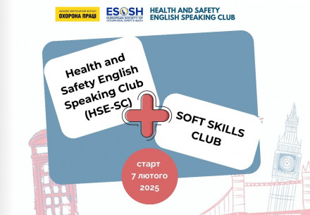 Health and Safety English Speaking Club (HSE-SC)   Із 7 лютого Health and Safety English Speaking Club (HSE-SC) – розпочинаємо працювати! Це щотижневі онлайн-зустрічі з вивчення та практикування англійської мови для українських фахівців з безпеки праці. Для чого? Це допоможе вам у вивченні світового досвіду у сфері безпеки праці, під час...