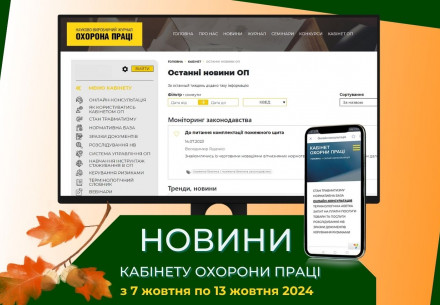 Новини КАБІНЕТУ ОХОРОНИ ПРАЦІ з 7 по 13 жовтня 2024 року