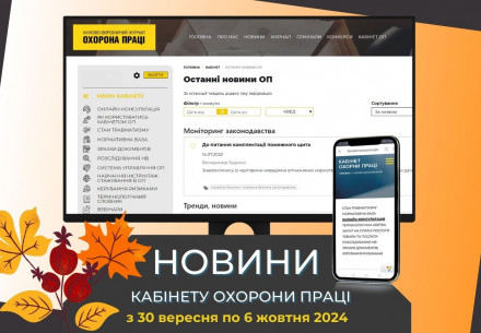 Новини КАБІНЕТУ ОХОРОНИ ПРАЦІ з 30 вересня по 6 жовтня 2024 року