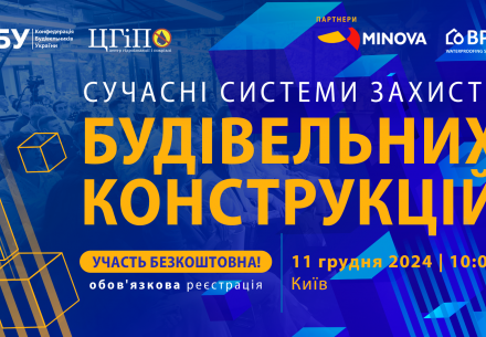 Професійний форум: СУЧАСНІ СИСТЕМИ ЗАХИСТУ БУДІВЕЛЬНИХ КОНСТРУКЦІЙ   Запрошуємо Вас на професійний форум, де зберуться провідні експерти та фахівці будівельної галузі для обговорення актуальних викликів і рішень у сфері гідроізоляції, герметизації та захисту конструкцій. Захід стане платформою для обміну досвідом, обговорення інновацій та огляду новітніх матеріалів і технологій, які використовуються в...