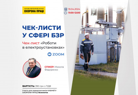 19 квітня стартує вебінар на тему "Чек-листи у сфері БЗР. Чек-лист "Роботи в електроустановках "