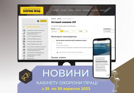 Новини Кабінету охорони праці: з 25 по 30 вересня 2023 року