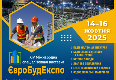 Запрошуємо до участі у Міжнародній виставці будівельних технологій, матеріалів та обладнання – ЄвроБудЕкспо 2025, що відбудеться 14-16 жовтня в МВЦ, м. Київ!   Прямий доступ до цільової аудиторії – забудовники, девелопери, виробники будівельних матеріалів, постачальники обладнання та інші професіонали галузі. Ефективний майданчик для бізнес-комунікації – розширюйте партнерську мережу, знаходьте нових клієнтів...