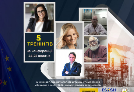 5 днів до IX науково-практичної конференції «Охорона праці – 2022: євроінтеграція та інновації»! Знайомимо вас із темами та спікерами конференції. На Конференції на вас чекають тренінги та майстер-класи від вітчизняних та європейських експертів. Бронюй собі місце Зареєструватись Вартість участі 24 та 25 жовтня: на умовах donation, тобто добровільних внесків. Але...